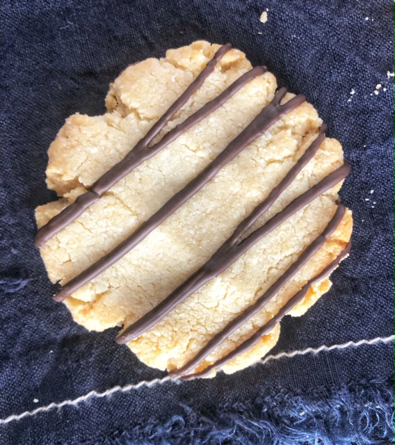 - When cookies are done and cooled, drizzle with melted chocolate using a spoon or pastry bag.